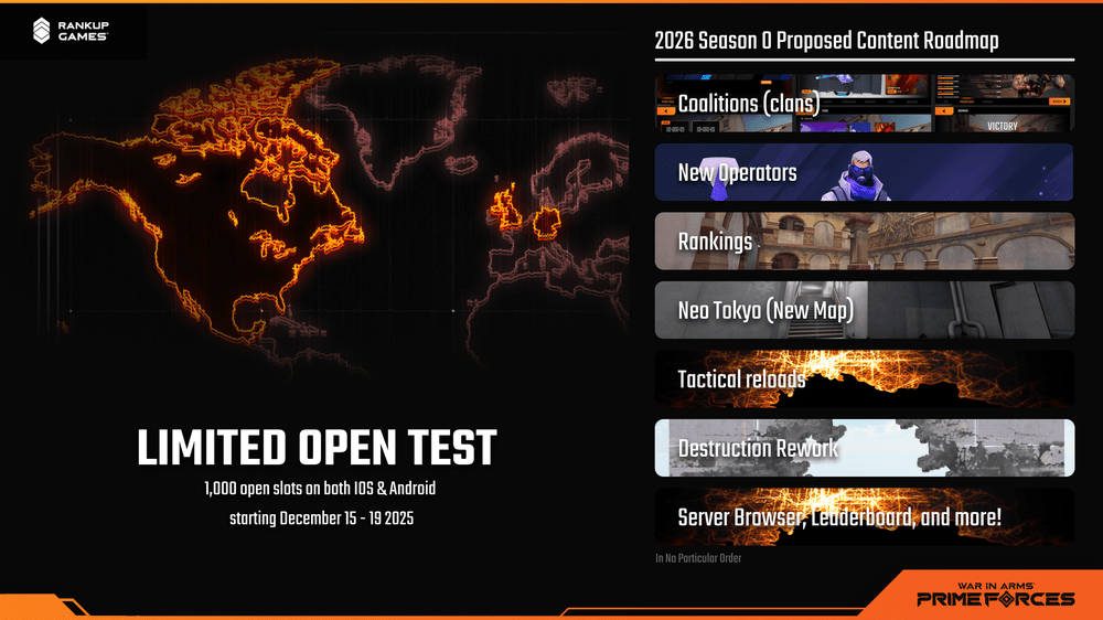 Starting December 15th, we're launching a Limited Open Test for War In Arms: Prime Forces. We're opening up 1,000 slots on both iOS and Android for the week, and no matter where you are in the world, you're welcome to join in.